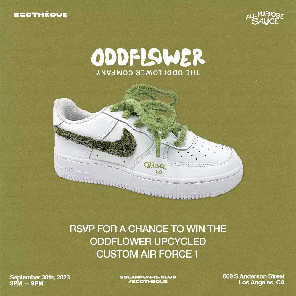 Gender-free brand The Oddflower Co. created a lounge for attendees to rest, hang and peruse threads. They also gave away a custom pair of upcycled Air Force 1’s made with real moss!