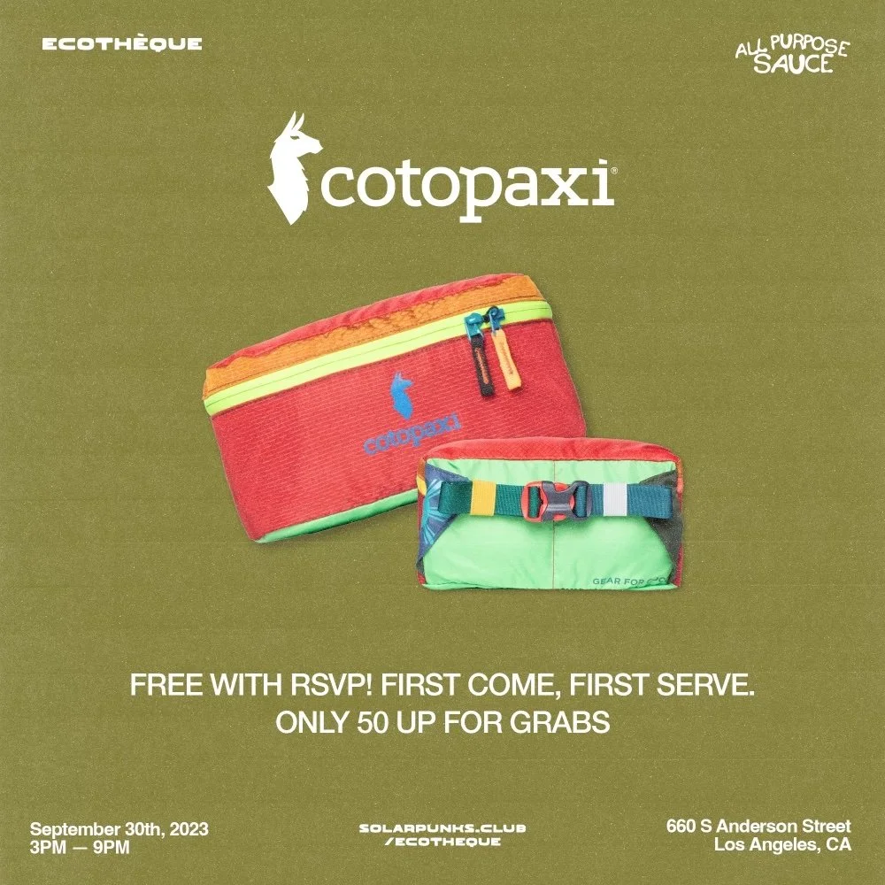 Our friends at Cotopaxi gave free fanny packs made from remnant fabrics in celebration of circular economies.