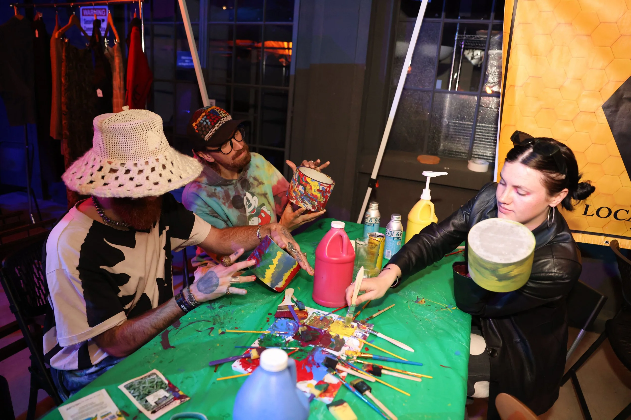 Attendees were able to paint a pot for a native plant with Solarpunk Park, in support of their Butterfly Garden Project at Radio Hill Gardens! They also featured their tomato buckets, an urban farming initiative.