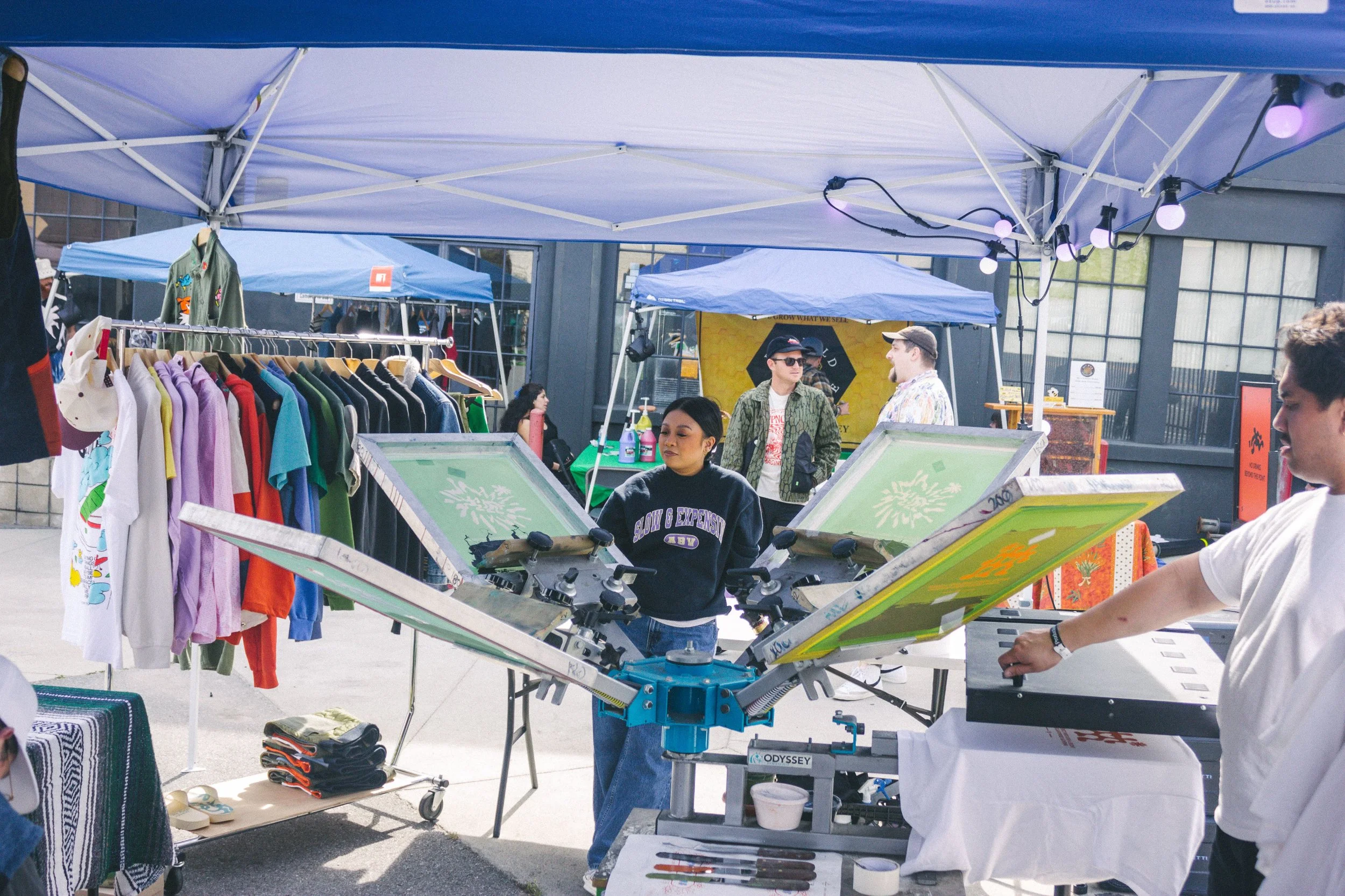 Attendees were able to get a secondhand tee or fleece blessed with our solar-powered on-site screen printing. They were also encouraged to BYOB (bring your own blank)!